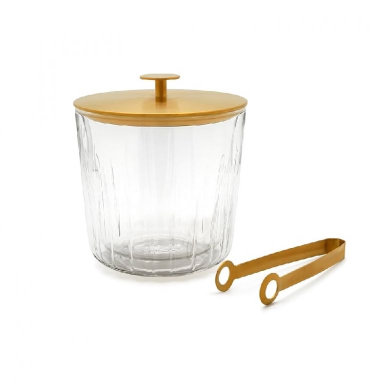 • Incluye tapa y pinzas para hielo color dorado.