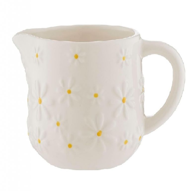 • Diseño de margaritas en relieve y centro amarillo pintado a mano.